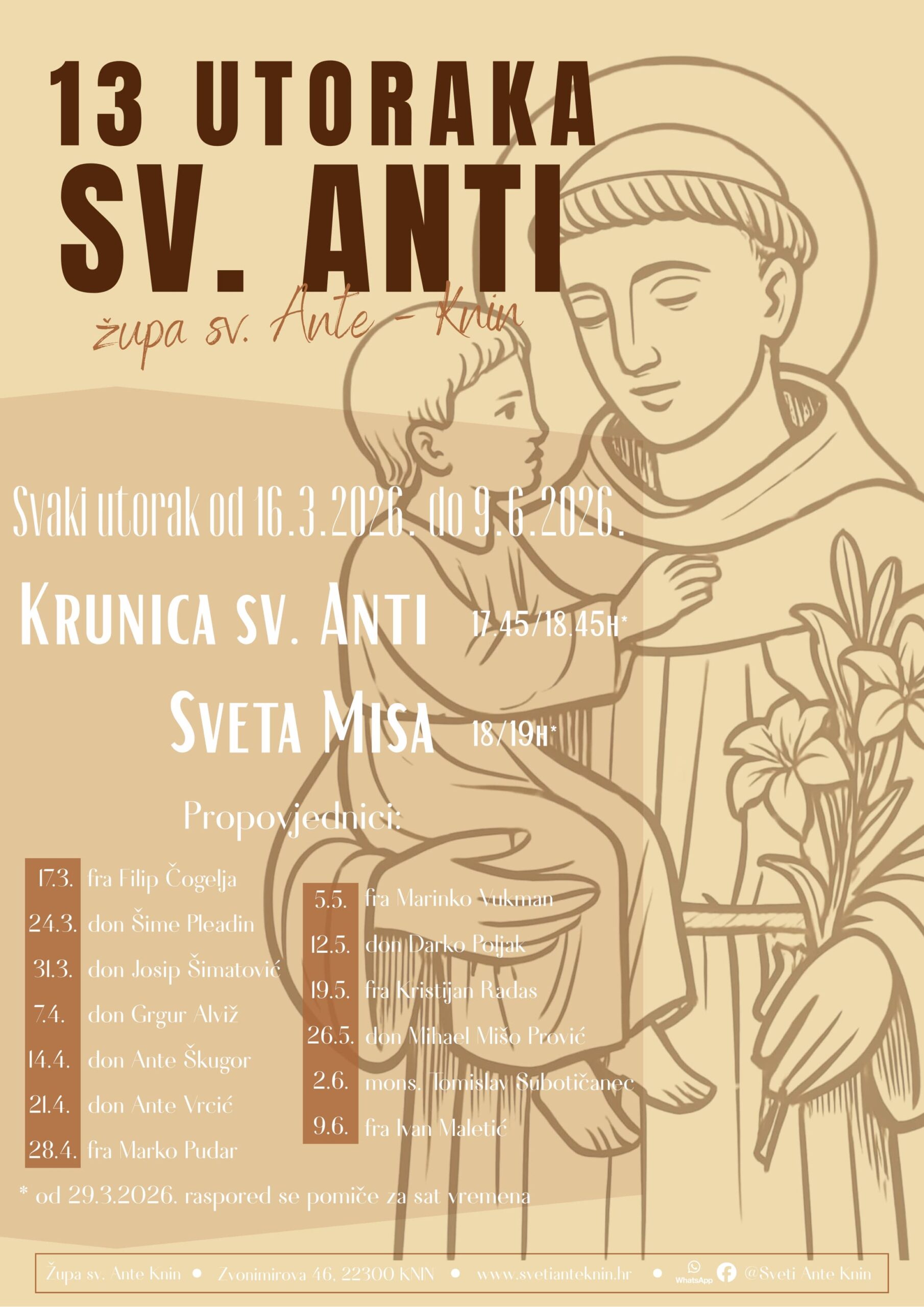 Dana, 13. lipnja svečano je proslavljen sv. Ante, zaštitnik župe i Grada Knina. Jutarnje mise u crkvi sv. Ante slavili smo u 6, 7 i 8 sati. Za vrijeme misa vjernici su imali priliku za ispovijed. U 9:30 sati formirana je procesija od crkve sv. Ante do crkve GVHKZ. U procesiji je sudjelovalo mnoštvo vjernika i hodočasnika (Promina, Kistanje, Miljevci, Vrlika, Kijevo, Vrpolje,…). Kip su […]